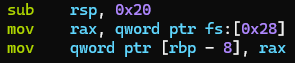 카나리는 함수 프롤로그에 스택에 fs:0x28의 값을 저장하고 함수 애필로그에 fs:0x28과 저장한 스택을 비교해 BOF를 탐지한다.