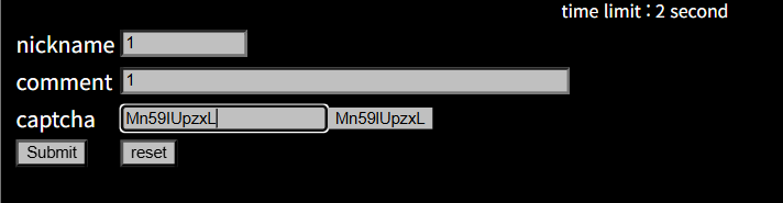 20번 문제는 닉네임과 코맨트 그리고 captcha를 2초안에 통과해야하는 문제이다.
