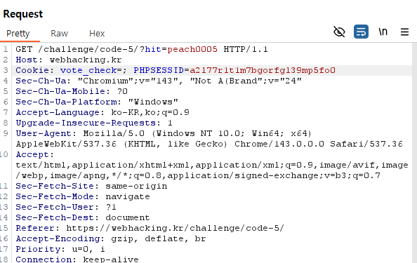 버프스위트로 패킷을 조사하면 cookie에 vote_check값이 ok이 되어있다. vote_check을 바꿔서 투표를 해보자