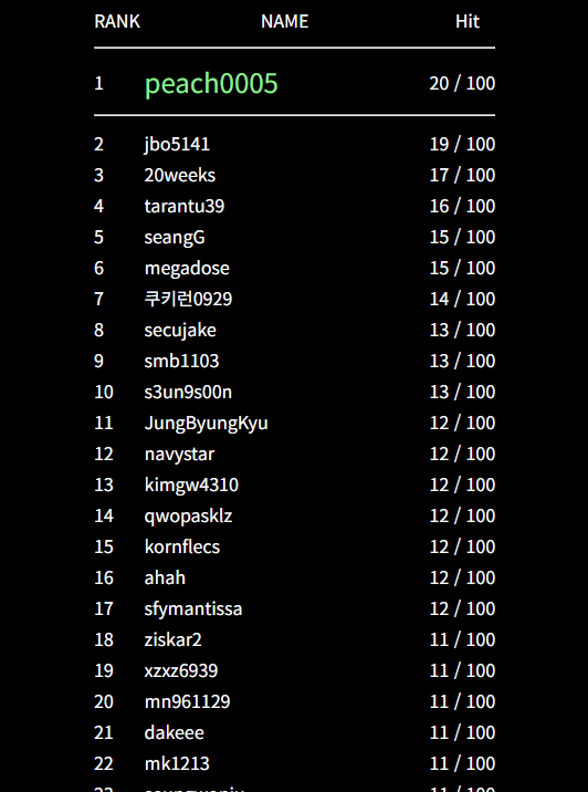 들어가면 HIT 랭킹표가 나온다. 닉네임을 클릭하면 이미 투표했다고 나온다.