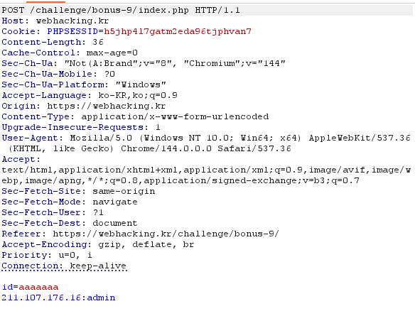 - HTML 주석에서 숨겨진 admin.php 페이지를 발견하고, 해당 페이지의 로그가 IP:ID 형식으로 기록됨을 파악했다.