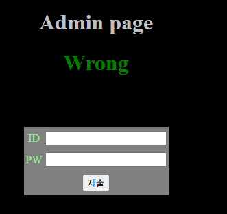문제에 들어가면 admin page라고 나오고 id와 pw를 입력받는다.