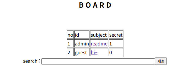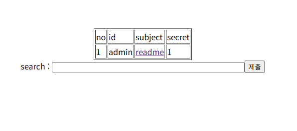 - 게시판 검색 기능에서 readme 내용에 포함된 플래그를 찾기 위해 참과 거짓 반응을 구분하는 Blind SQL Injection 공격을 수행하는 문제이다.